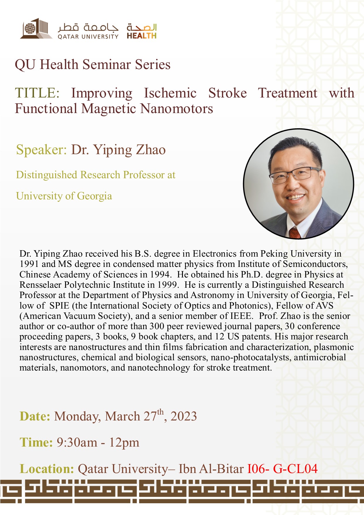 Speaker: Dr. Yiping Zhoa