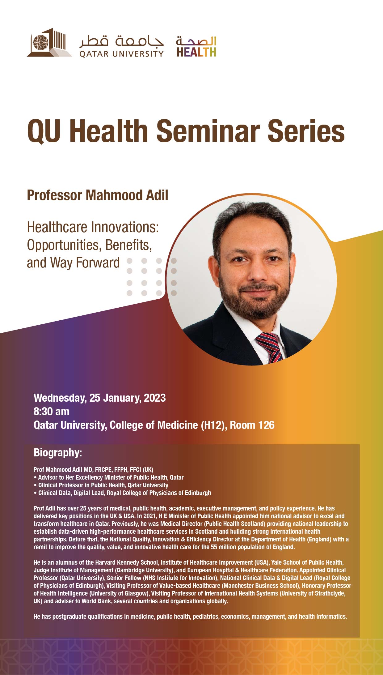 Speaker: Prof. Mahmood Adil MD