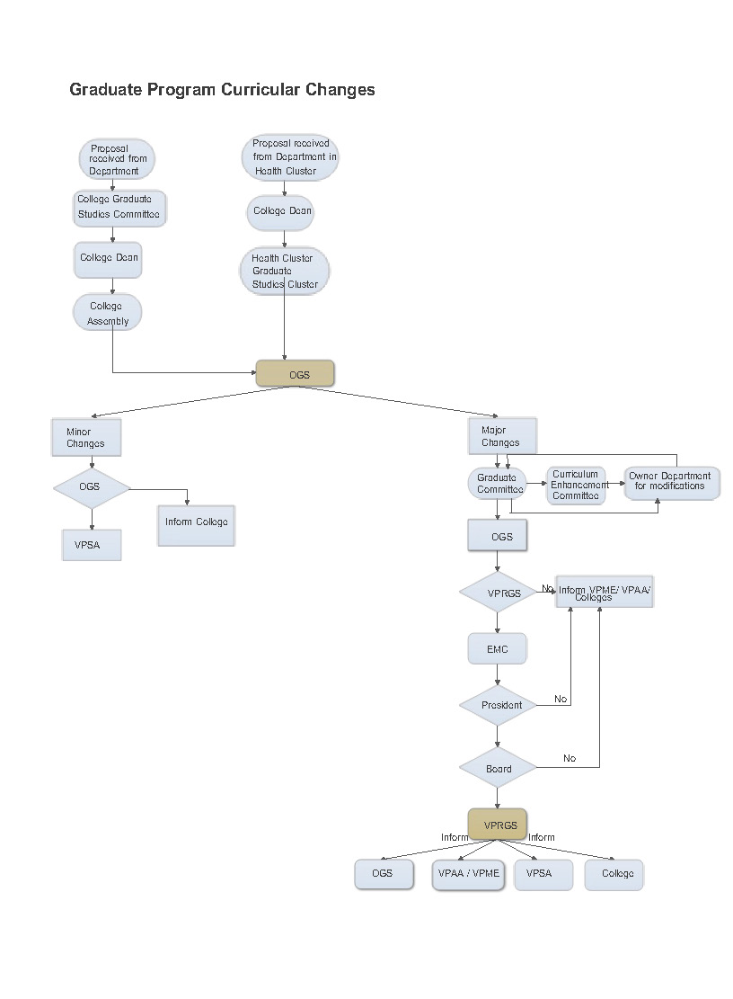The major changes are requiring several approvals starting from the Office of Graduate Academics to the Curriculum Enhancement Committee till the Board of Regents as details in the Chart.