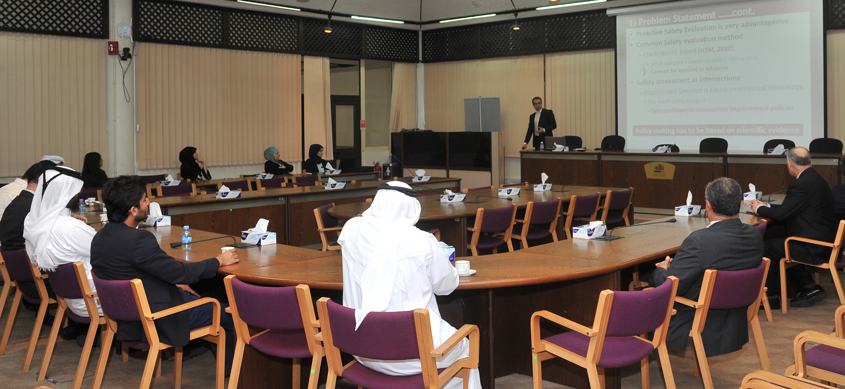 In line with the Third united Nation Global Road Safety Week 2015, the center ran two competitions among all primary and preparatory schools in Qatar. Primary schools participated with posters about kids safety on roads, on the other hand preparatory schools participation was a short story about road safety. A committee from 5 members (faculty members) was formed and prizes worth 15,000 QAR were given to the winners.